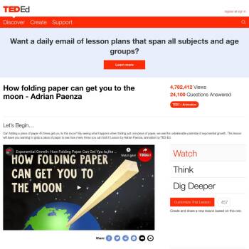 TED-Ed Lesson: Can folding a piece of paper 45 times get you to the moon? By seeing what happens when folding just one piece of paper, we see the unbelievable potential of exponential growth. This lesson will leave you wanting to grab a piece of paper to see how many times you can fold it! Lesson by…