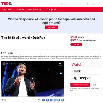 TED-Ed Lesson: MIT researcher Deb Roy wanted to understand how his infant son learned language -- so he wired up his house with video cameras to catch every moment (with exceptions) of his son’s life, then parsed 90,000 hours of home video to watch “gaaaa” slowly turn into “water.” This astonishing…