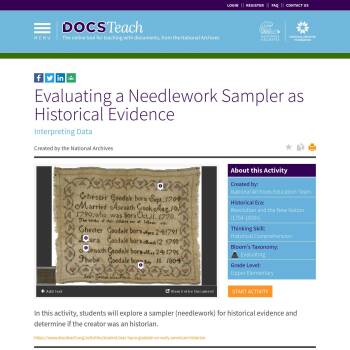 In this activity, students will explore a sampler (needlework) for historical evidence and determine if the creator was an historian.