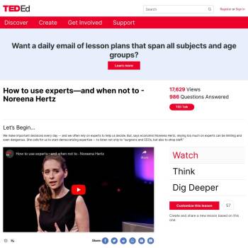 TED-Ed Lesson: We make important decisions every day -- and we often rely on experts to help us decide. But, says economist Noreena Hertz, relying too much on experts can be limiting and even dangerous. She calls for us to start democratizing expertise -- to listen not only to “surgeons and CEOs,…